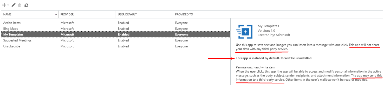 Exchange Apps/Add-ins May Share Your Personal Information with Third-Party Services