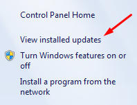 3. Click View installed updates on the left hand side.