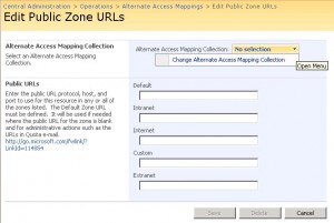 2. In the Alternate Access Mapping Collection box select Change Alternate Access Mapping Collection from the drop-down box.
