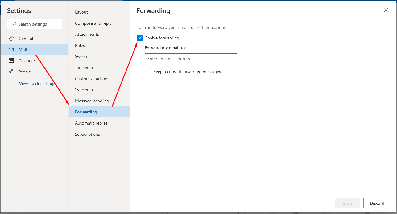 - If you want to save a copy of your forwarded messages in Outlook.com, then select the box Keep a copy of forwarded messages. This step is optional.