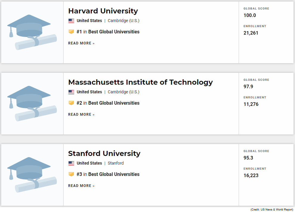 USN&WR publishes these rankings and details of research to help out students around the world. According to USN&WR “Students can use these rankings to explore the higher education options that exist beyond their own countries’ borders and to compare key aspects of schools’ research missions.” Obviously, the college ranking isn’t the only thing to consider, the students must also consider the total enrollment, city, climate, culture, tuition, cost of living, and a host of other things. There is a reason why so many famous people graduate from the top universities around the world. They are usually not famous when they are students. Most become famous because of the opportunities after they graduate.